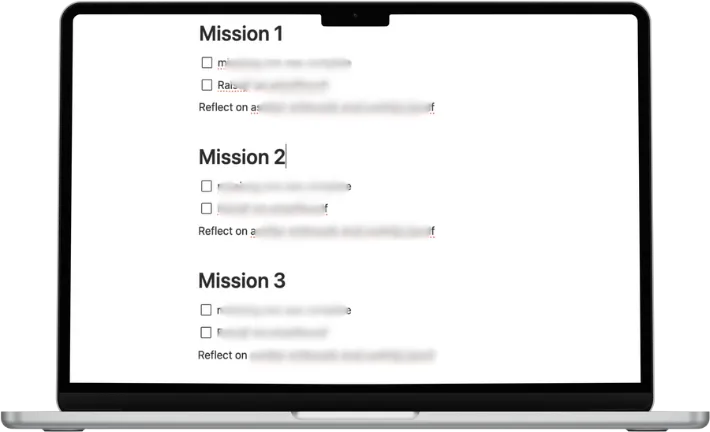 → Each mission is designed to build on each other progressively, so you have a clear roadmap of what you need to do in order to get the result you want